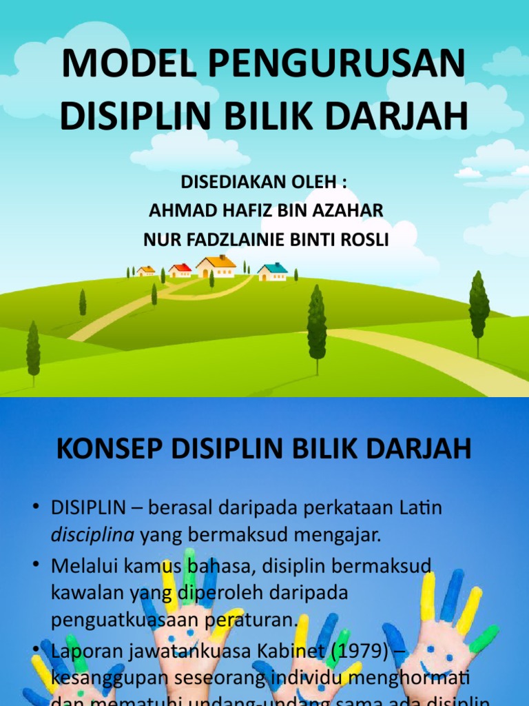 Pengetahuan tentang model-model pengurusan disiplin dan cara-cara pelaksanaannya mungkin dapat dijadikan panduan oleh guru-guru dalam menguruskan bilik darjah dengan berkesan. Disiplin merupakan satu set peraturan yang dikenakan kepada murid untuk mengawal dan mendapatkan tingkah laku yang baik. 1 - 11.